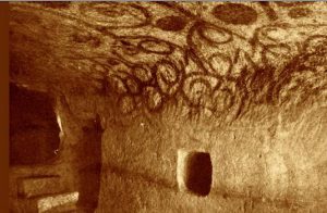 We waren zeer ruim op tijd aanwezig vandaag en dus was er alle tijd op het bankje plaats te nemen en me voor te bereiden op mijn ” labyrint” ervaring. De ondergrondse tempels als exacte kopieen van de bovengrondse megalitische tempels. Een wereld die dus spiegelbeeld kan geven of bv binnen-buiten omdraait. In een exacte kopie….. En men verteld dat deze ondergrondse kopieen met vuitbijltjes uit massieve rotsen gehouwen zijn…….. nou…. Deze waarheid resoneert iig NIET in mij. Terwijl ik daar zo zat voelde ik de grond en het bankje al onder me bewegen en golven. Op dat moment weet ik dat nog aan mijn zeebenen en gevoel wat bij mij meestal wat langer aanhoud dan gemiddeld….. Het voorprogramma was bekend en wederom mooi gemaakt en uitgevoerd. Trappelend van ongeduld ging ik als eerste onze gids na en betrad laag 1 van het hypogeum. Met wilbert in mijn kielzog genoot ik puur van het er ZIJN, samen met mijn lief. Braaf luisterden we naar gids en digitale recorder en liepen zo langzaam van punt naar punt en van laag 1 naar laag 2. Vol verwachting betrad ik de ohm ruimte, maar behalve dat ik steeds meer last kreeg van mijn zeebenen, deze keer geen heftige muzikale ervaringen, slechts een intens genieten van de diepe Ohm trilling die door me heen ging en vulde.