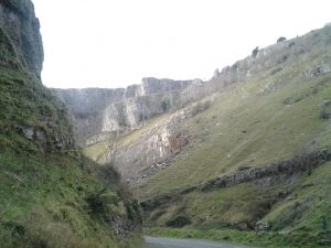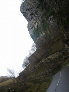 Zo gezegd zo gedaan hebben we die borden gevolgd. Na Wells stond er een bord Cheddar links af, de Tomtom die ook aan stond zei rechts…. Ik zei dus zo meteen links af he… maar ze ging dus rechts terwijl ze me met grote ogen aan zat te kijken. “Wat doe ik nu” zei ze toen…. Tja, je gaat dus rechts af…. zei ik. Omdraaien? vroeg ze me…. Nee zei ik ,rijd maar door, zal wel zo moeten. En zo kwamen we op een slingerweg tussen hoog opgestuwde rotsen met hier en daar bomen en steile wanden waar grotingangen soms zichtbaar waren. Het wemelde er van de schimmen en er hing een heel onaardse energie. Op een inham met parkeerplaats zijn we gestopt om dit alles te bekijken en op ons in te laten werken. Heel bijzonder!! Achteraf heb ik met Google Earth gezocht en de weg gevonden. Cliffroad heet het en is een omweg om ook in cheddar te komen. Een smal gebied vol steile rotswanden die ooit door aardlagen omhoog gestuwd zijn in een verder glooiend gebied met veel gras en bossen doet daar vreemd aan. Slechts 1 slingerweg door dit smalle gebied wat zo anders is. Nog steeds onder de indruk zijn we in Cheddar gestopt voor fish and chips en we voelde hoe de energie van dit dorp ook heel sterk was maar anders…. T gaf een gevoel van omhuld worden door tintelingen, maar aan de buitenkant dus van de benen op de huid etc. en niet door ons centrum. Behoorlijk uitgeput kwamen we mooi op tijd aan op t vliegveld en hebben daar gewacht op vertrek. Alles verliep vlekkeloos, ook t laatste stuk met de trein naar huis nog vanaf Schiphol. Zonder haasten of rennen haalden we de trein en onze overstaps.