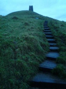 Voorzichtig ben ik opgestaan en we hebben ons resoluut omgedraaid om terug te gaan. We hadden geen idee van andere mogelijke wegen of paden… daar hadden we niet naar gekeken of gezocht vooraf…. Dus zijn we in de auto gestapt en hebben geheel op intuïtie onze weg gezocht. Hier links, daar rechts etc. Een bordje met “TOR voetpad” Die weg in… nee niet goed!! In de achteruit en terug en verder. Na ruim een kwartier kwamen we tussen weilanden uit bij een ander pad. Dat was waar we moesten zijn!!! Een verhard pad wat overging in een verharde trap na de laatste rand met beschutting van bomen keken we uit op het laatste stuk door de omhooglopende velden met gras en daarboven dus TOR. Het waaide enorm daarboven en t was nog steeds donker. Door de bewolking ook geen maan of sterren. We wilde beginnen aan t laatste stuk van t pad met trap naar boven waar ik ineens enorm duizelig werd en weer bijna viel. Ok ok boodschap was duidelijk. HIER stoppen!!!! In de luwte van de bomen stond een hekje om tegen aan te leunen en daar zijn we gaan staan voor de meditatie/ritueel. In mijn ene hand t kristal en in de andere de tablet met de MP3 meditatie erop. Na de eerste zin werd t ineens windstil !!!! en kwam de energie met hulp van de meditatie in volle lagen door en over ons heen. Wauw!! Wat een krachten!!! T bleef windstil toen de meditatie afgelopen was en zagen we voor onze ogen van alles gebeuren daar op de berg bij en rondom Tor. Ik heb letterlijk door de nevelen mogen kijken. Zag mensen lopen, gehoornde, elfen, en druïden. Zag de oude kerk in zijn geheel zoals die ooit was en waar de toren Tor nu alleen een overblijfsel van is. Maar uit de tijd daarvoor zag ik dus ook de bomen en de optocht van mensen in een ceremonie. Ik zag een soort van vuurwerk, sparkels van licht die alle kanten op schoten en terwijl t langzaam licht werd zag ik de aura van moeder aarde over de hele heuvel golven in al zijn kleuren en pracht, stralend. Ook de toren Tor straalde alsof er een groot vuur in brandde wat licht gaf. Ik voelde me geheel opgenomen in deze energie, alsof ik er middenin stond , t ging door de kern van mijn wezen en maakte enorm veel emoties los. Ik heb dus ook staan huilen als een klein kind. Zelfs nu ik erover schrijf welt t weer in me op, zo sterk was het. Na ruim een uur was het helemaal licht en voelde we langzaam dat het weer waaide en wij eigenlijk vaststelden dat we verkleumd en koud waren. Tijd om terug te gaan en warm te worden met een warme douche en ontbijt met koffie!!!