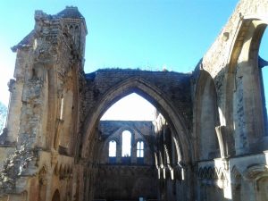 Het terrein van de Abby is een verzameling van ruïnes en overblijfselen van een enorme kathedraal uit de middeleeuwen ( mannelijke energie) en een kleinere kerk/kapel ter ere van Maria, de Ladychapel (vrouwelijk). Ook hier in dit kerkje lag een bron….. Mijn vriendin voelde zich er enorm door aangetrokken maar wist niet dat DAT dus Ladychapel was. Het heeft veel emoties losgemaakt waar we ook healing bij ontvingen. Zonder enig hulpmiddel kon ik voelen waar de leylijnen liepen en de krachtbronnen van energie die vervolgens op die plekken heel sterk vanuit de aarde door je heen stromen en je opladen met….. energy….